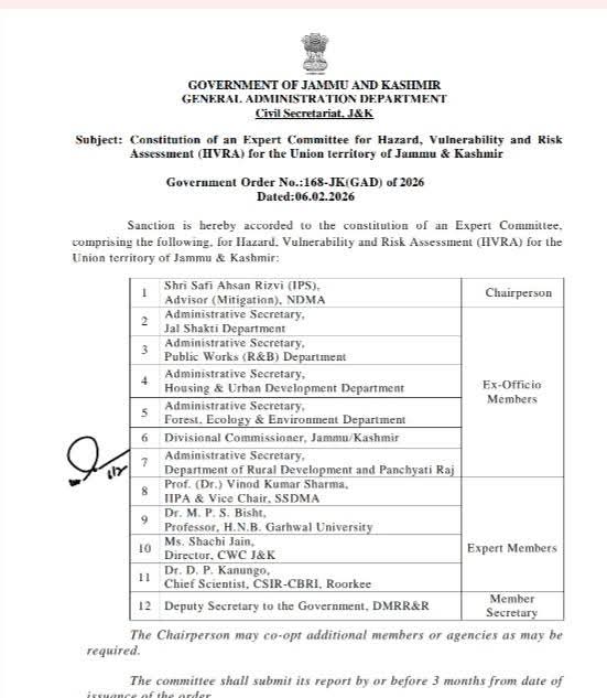हेमवती नंदन बहुगुणा गढ़वाल केंद्रीय विश्वविद्यालय के लिए यह अत्यंत गौरव का क्षण है कि विश्वविद्यालय के प्रोफेसर एवं हिमालयी आपदा अध्ययन के विशेषज्ञ प्रो. एम.पी.एस. बिष्ट को जम्मू-कश्मीर सरकार द्वारा गठित “हैज़र्ड, वल्नरेबिलिटी एंड रिस्क असेसमेंट (HVRA)” विषयक उच्च स्तरीय विशेषज्ञ समिति में सदस्य नामित किया गया है। सामान्य प्रशासन विभाग, जम्मू-कश्मीर द्वारा 06 फरवरी 2026 को जारी सरकारी आदेश संख्या 168-JK (GAD) 2026 के अंतर्गत इस समिति का गठन किया गया है।