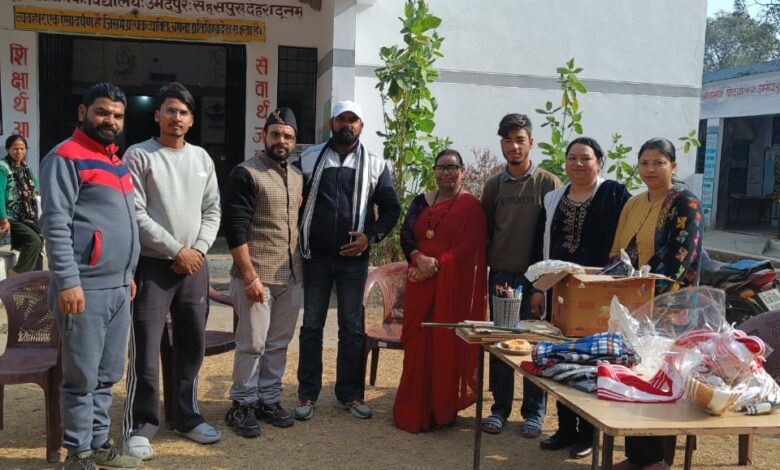 स्कूल के बच्चों को हाथों के ग्लव्स, मफलर एवं पैटीज का वितरण किया