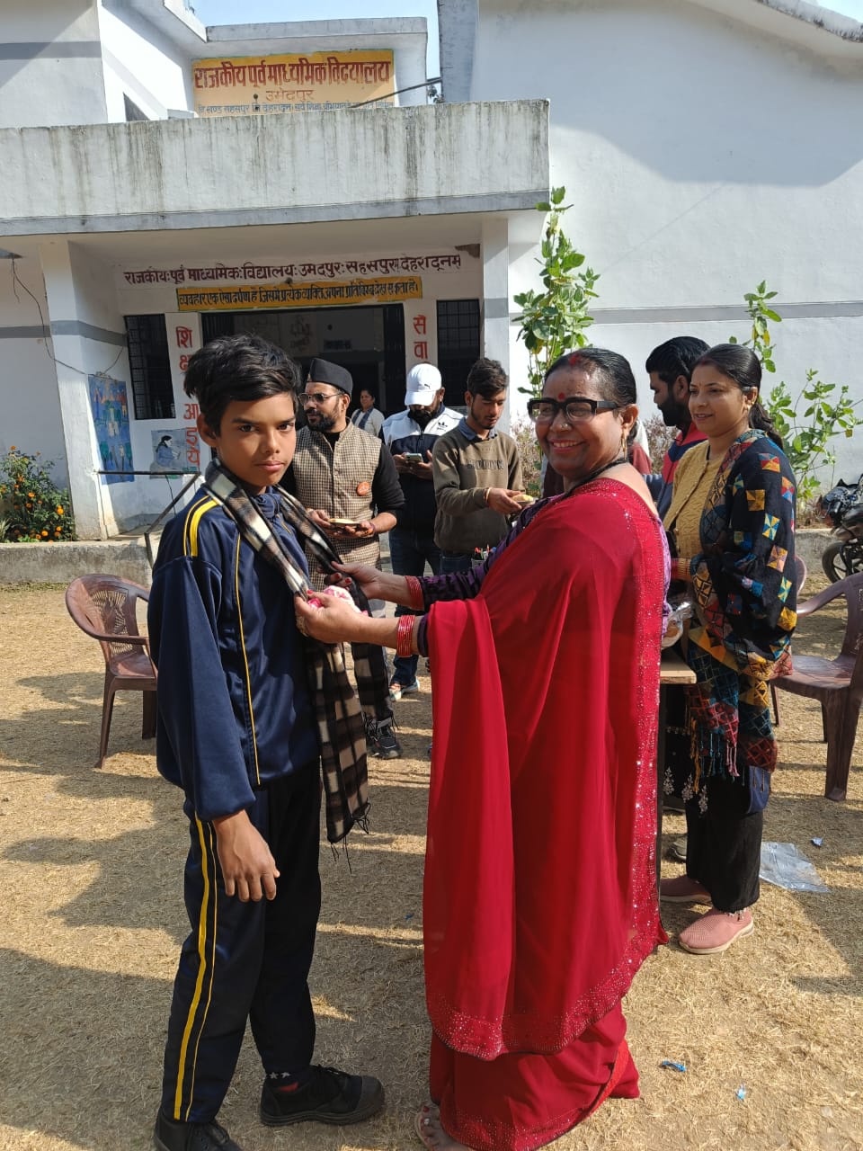 इस अवसर पर स्कूल के बच्चों को हाथों के ग्लव्स, मफलर एवं पैटीज का वितरण किया गया ।