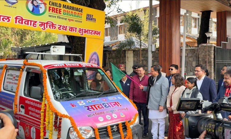 रास्ट्रीय बालिका दिवस पर दिनांक 24 जनवरी 2026 को माननीय मुख्यमंत्री उत्तराखंड श्री पुष्कर सिंह धामी जी द्वारा देहरादून से “बाल विवाह मुक्ति रथ” को फ्लैग ऑफ कर विधिवत शुभारंभ किया गया। माननीय मुख्यमंत्री द्वारा कहा गया की यह रथ एक चलित जन-जागरूकता अभियान के रूप में कार्य करेगा, जिसका उद्देश्य दूरस्थ, ग्रामीण एवं उच्च जोखिम वाले क्षेत्रों तक पहुँच बनाकर बाल विवाह जैसी सामाजिक कुरीति के विरुद्ध समयबद्ध, सघन एवं प्रभावी संदेश जन-जन तक पहुँचाना है।