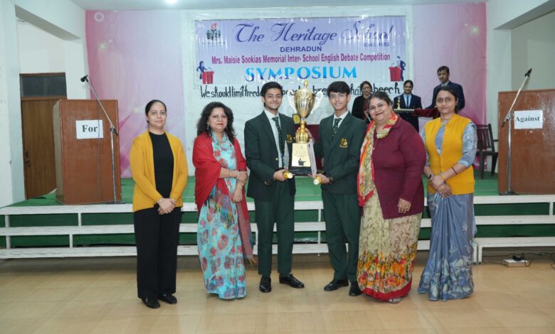 देहरादून। द हैरिटेज स्कूल के तत्वावधान में चतुर्थ मैसी सूकियास मैमोरियल अंतर विद्यालय अंग्रेजी वाद विवाद प्रतियोगिता सिम्पोजियम में कर्नल ब्राउन स्कूल ने सर्वाधिक अंक हासिल कर ट्राफी पर कब्जा किया जबकि सेंट थॉमस कॉलेज को उप विजेता रहा।