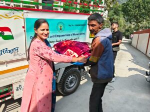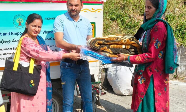 डेवलपमेंट एंड एम्पावरमेंट ऑफ वूमेन सोसाइटी ने आपदा प्रभावित 69 परिवारों को कंबल एवं त्रिपाल आदि राहत सामग्री वितरण की।