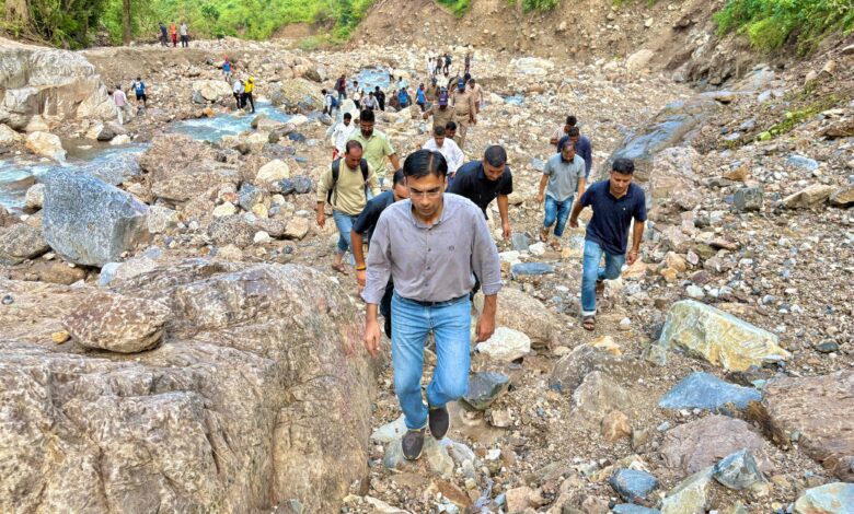जिले का ऐसा ही क्षेत्र फुलेत, छमरोली, सिल्ला, क्यारा, सिमयारी सड़क वाशआउट होने से जनपद मुख्यालय के सम्पर्क से कट हो गए थे जहां हेली के माध्यम से रसद सामग्री भिजवाई जा रही थी। जिलाधिकारी ने हेली सेवा का विकल्प छोड़ विकट सड़क मीलों पैदल मार्ग को चुना तथा मालदेवता से सेरकी-सिल्ला, भैंसवाड़ गांव छमरोली के कुछ हिस्से तक विकट सड़क तथा उसके उपरान्त लगभग 12 किमी गांव-गांव पदैल चल घर से लेकर खेत-खलियान तक आपदा से हुए नुकसान का जायजा लिया तथा राहत बचाव कार्य क्षति का आंकलन एवं मुआवजा वितरण के लिए विशेष तहसीलदार,बीडीओ सहित सम्बन्धित विभागों के अधिकारियों एवं कार्मिंको की अग्रिम आदेशों तक डय्टी लगा दी है जो खर्चे का पूर्ण आंकलन तथा मुआवजा वितरण तक आपदाग्रस्त क्षेत्र में रहेंगे।