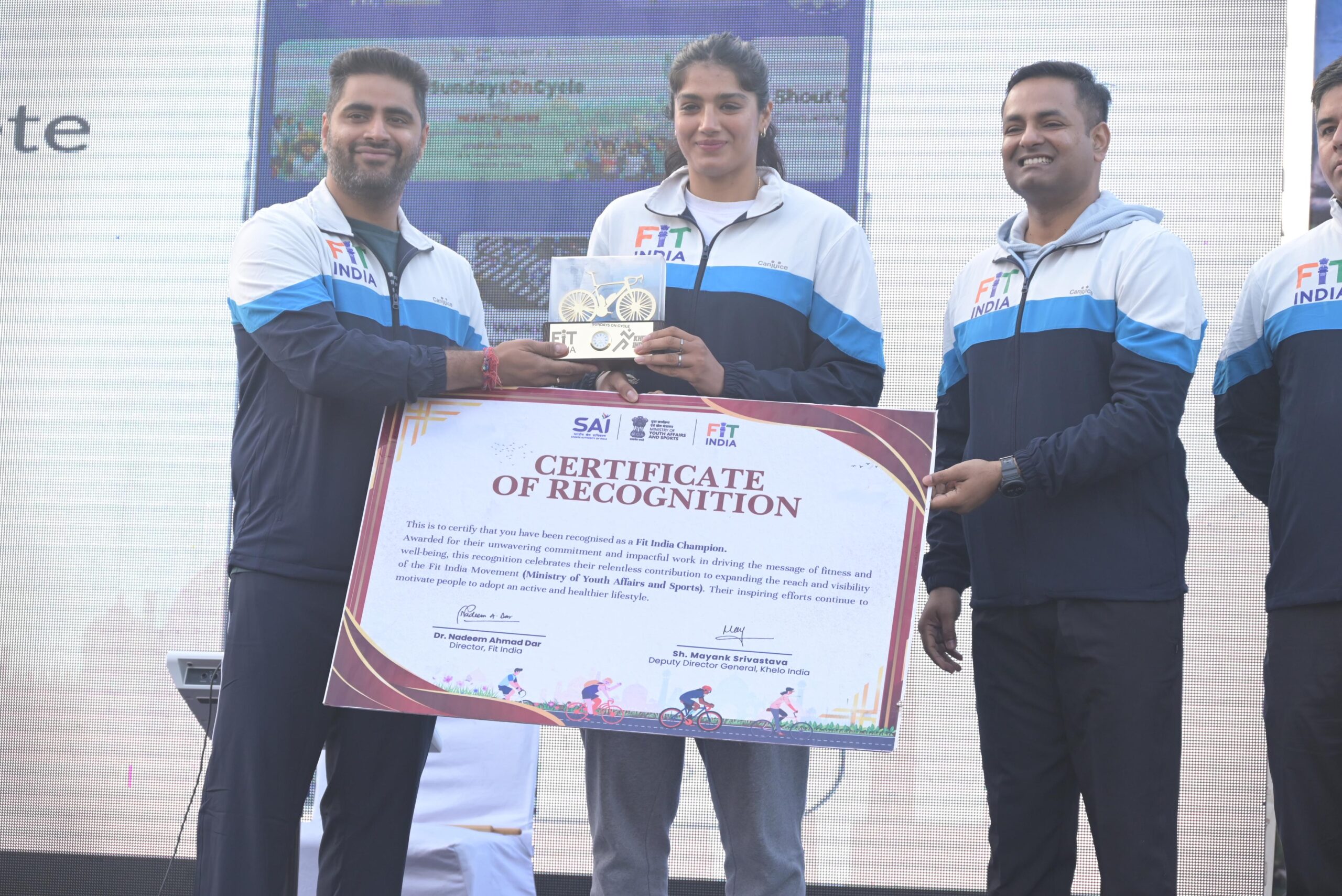 निदेशक, एनएसआरसी लखनऊ, लेफ्टिनेंट कर्नल गौरव सिंह और उप निदेशक (मीडिया), श्री. प्रशांत सिंह भारतीय खेल प्राधिकरण से उपस्थित थे, जो दिसंबर 2024 से हर हफ्ते फिट इंडिया संडे ऑन साइकिल के आयोजन में महत्वपूर्ण भूमिका निभाता है।
