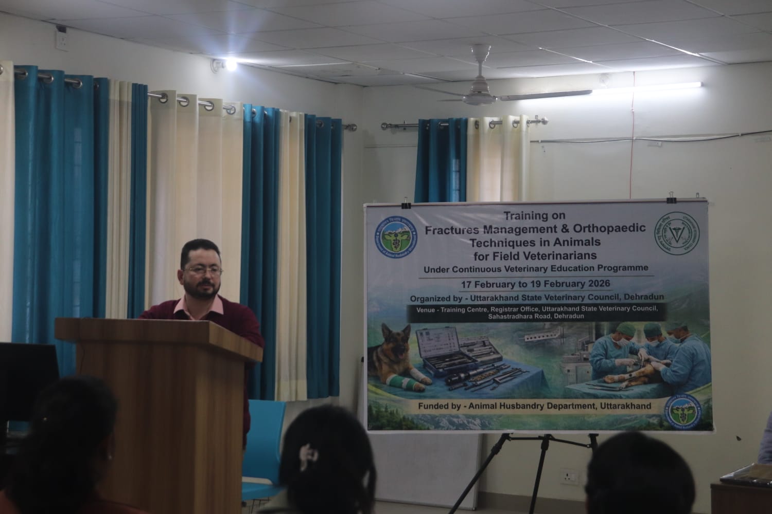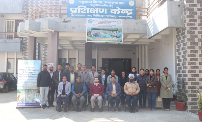 पशुचिकित्सा विज्ञान के बदलते परिदृश्य को दृष्टिगत रखते हुए पशुपालन विभाग के पशुचिकित्साधिकारियों के कौशल विकास हेतु उत्तराखण्ड राज्य पशुचिकित्सा परिषद द्वारा मंगलवार, 17 फरवरी को पशुपालन विभाग में कार्यरत 20 पशुचिकित्साधिकारियों के लिए तीन दिवसीय प्रशिक्षण कार्यक्रम “Fractures Management & Orthopaedic Techniques in Animals for Field Veterinarian” का आयोजन किया गया।
