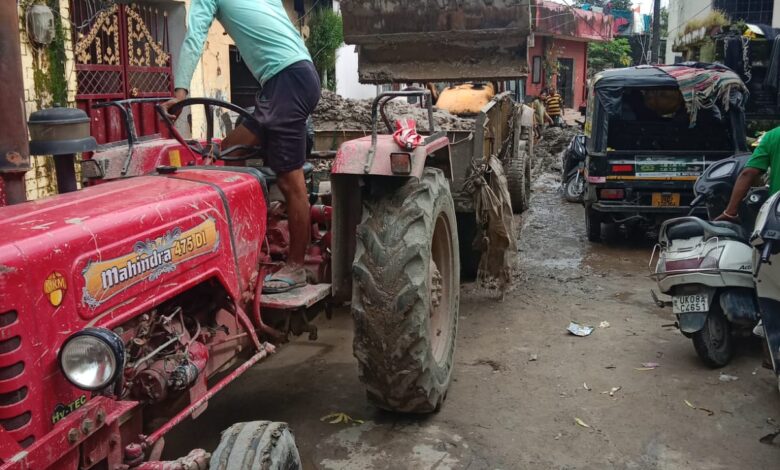डालनवाला एमडीडी कॉलोनी में अतिवृष्टि से आए मालवा, गाद लोगों के घरों एवं सड़को पर भरने से जनजीवन प्रभावित हो गया था।