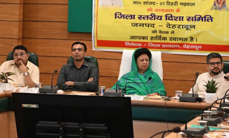 टिहरी सांसद माला राज्य लक्ष्मी शाह ने बृहस्पतिवार को देहरादून वन मुख्यालय के मंथन सभागार में जिला विकास समन्वय एवं निगरानी समिति (दिशा) की बैठक लेते हुए केंद्र पोषित योजनाओं की प्रगति समीक्षा की। उन्होंने जन प्रतिनिधियों एवं विभागीय अधिकारियों को बेहतर तालमेल के साथ जनहित में संचालित केंद्र पोषित योजनाओं को गुणवत्ता एवं समयबद्धता के साथ प्रभावी क्रियान्वयन करने के निर्देश दिए।