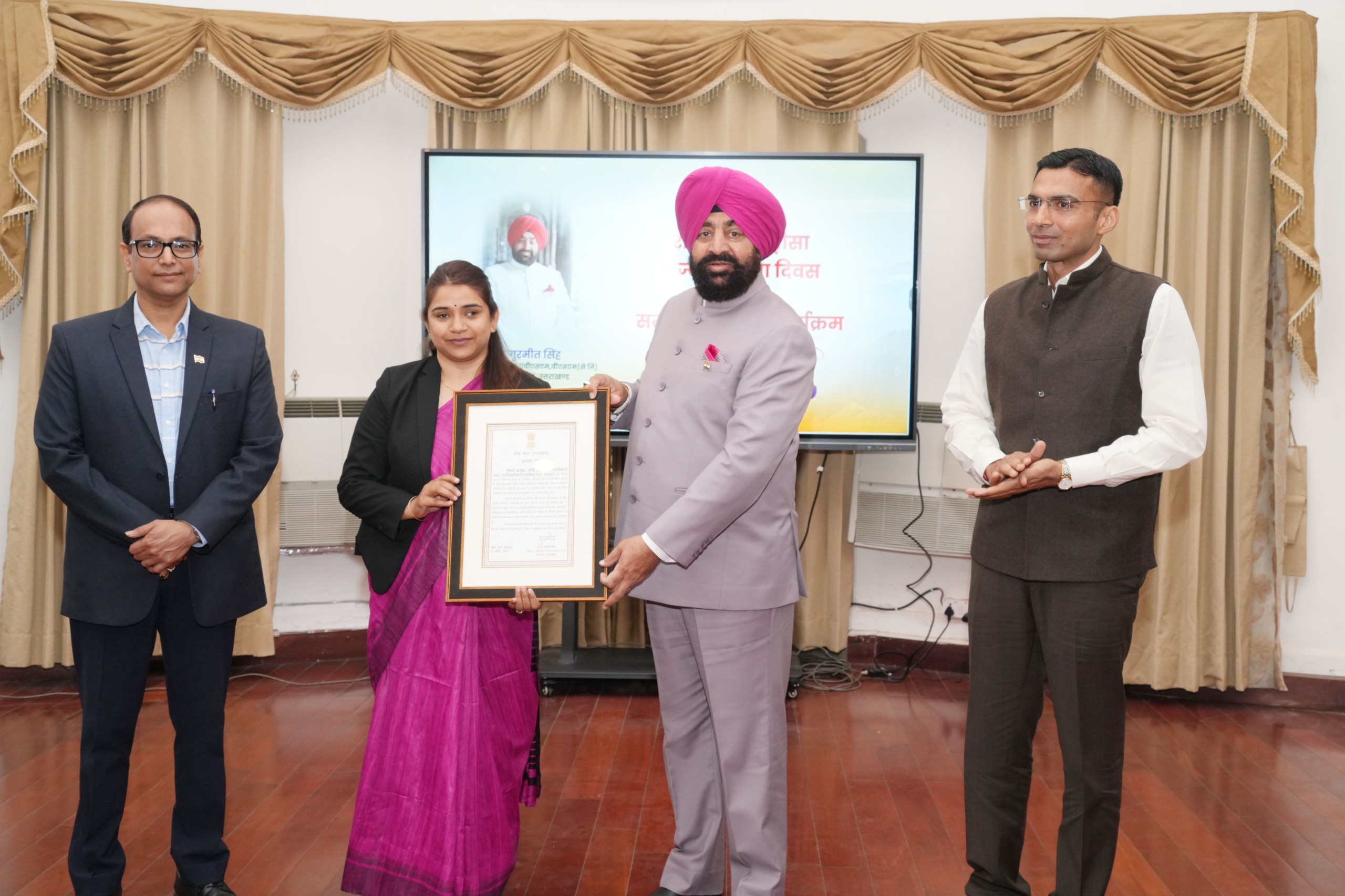 इस अवसर पर सचिव राज्यपाल श्री रविनाथ रामन, अपर सचिव श्रीमती रीना जोशी, जिलाधिकारी देहरादून श्री सविन बंसल एवं मुख्य विकास अधिकारी श्री अभिनव शाह उपस्थित रहे।