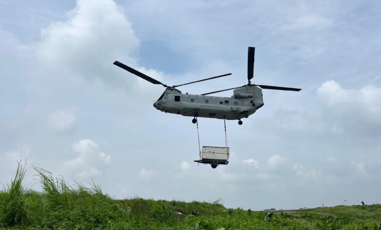 जिलाधिकारी सविन बंसल के नेतृत्व में जिला प्रशासन की टीम तत्परता के साथ राहत कार्यो में जुटी है। रेस्क्यू कार्यो के लिए सभी आवश्यक संशाधनों को धराली भेजा जा रहा है। जौलीग्रांट एयरपोर्ट से आज चिनूक और MI-17 हैलीकॉप्टर द्वारा जेनसेट, डीजल, साइलेंसर, केवल, रिलायंस जिओ टावर सामग्री, ड्राई एवं फ्रेस राशन, फूड पैकेट्स, वेजिटेबल आदि सामग्री धराली भेजी गई। जरूरत पडने पर मोडिफाइड ब्रिज और वर्मा ब्रिज पहुंचाने की तैयारी है। घाटी में कम्युनिकेशन व्यवस्था वहाल करने हेतु शुक्रवार को जिओ टावर की सामग्री के साथ आपरेटर्स की टीम भेजी गई है। हलांकि खराब मौसम के कारण जौलीग्रांट में हैलीकॉप्टरों को उडान भरने के लिए काफी इतंजार करना पडा। मौसम साफ होने पर जौलीग्रांट से जरूरी रेस्क्यू सामग्री और रसद भेजी गई।