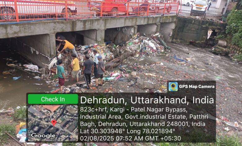 नगर निगम देहरादून ने बरसात के कारण छोटे बड़े नालों में जमा कचरे की सफाई करवाई।