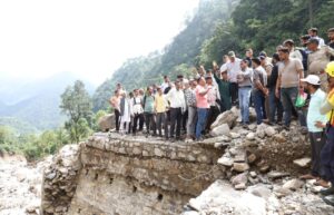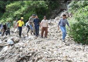 जिलाधिकारी सविन बंसल हेली का विकल्प छोड़; दुर्गम रास्तों से पैदल तथा सड़क मार्ग से सफर कर आपदा से हुए नुकसान का लिया जायजा।